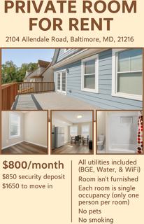 3 Bedrooms · 2 Bathrooms Apartment · Edmondson, Baltimore