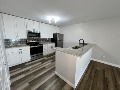 This is a partially-renovated apartment, the photos with the blue cabinets are of the actual unit. The bathroom has been remodeled and there is new grey vinyl plank flooring throughout. There is no in-unit laundry in this apartment - there is shared coin-op laundry on the first floor of this building for use. Please reach out directly with any additional questions or concerns before applying!