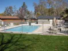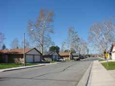 Hemet Meadow Homes forms its own quiet neighborhood. Each one-story duplex home as a front yard with park-like greenbelts running through the neighborhood.