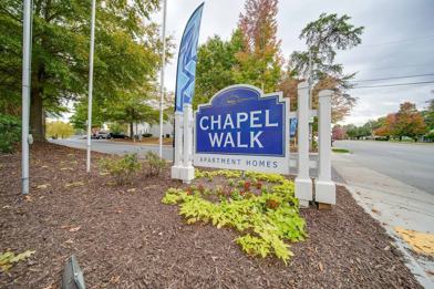 Chapel Walk Apartments 1370 Lees Chapel Rd is a rental apartment building with 14 floorplans available. It is located in Greensboro. It has apartment amenities including carpet, ceiling fan, dishwasher, in-unit laundry, walk-in closets, and air conditioning. It has building amenities including on-site management, controlled access, and outdoor space. Cats and dogs are allowed, making it a pet-friendly building.