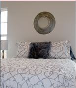 Cats are OK and Dogs have a weight limit of 40 lbs. There is a fee for pets and you are allowed two.