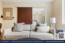 Thoughtfully designed with bespoke finishes, modern furnishings, and a fully equipped kitchen, you’ll enjoy that “I’m home” feeling with this Blueground apartment. Whether you’re lounging in your cozy living room streaming the latest and greatest entertainment on the smart TV or premium wireless speaker, or getting some well-earned rest on the superior quality mattress with luxury linens, you’ll fall in love with everything this George Washington University apartment has to offer. This apartment also offers in-apartment laundry.