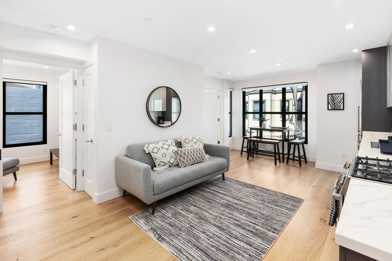 This apartment is custom designed for a comfortable and inspiring environment. It includes a fully equipped kitchen, full bathroom, plenty of storage, a smart TV, stainless steel appliances, hardwood floors, and in-unit laundry. Amenities include a dishwasher, fitness center, co-working space and conference rooms, resident lounge, bike room, on-site maintenance, gated community, and concierge.