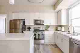 This apartment includes everything needed for a quality and memorable experience for up to 6 guests. The entire interior is furnished with amenities to elevate your experience. Complimentary amenities include a coffee and tea starter pack, Netflix, fast and free Wi-Fi, a fully stocked kitchen, and free parking. The living area features a 65" Smart HDTV with Netflix, a full-sized washer and dryer, and balcony access. The kitchen comes with basic cooking equipment, dishware, a stainless steel refrigerator, microwave, stove, oven, toaster, rice cooker, and Keurig coffee machine. The dining area is furnished with a sleek table and 6 comfortable chairs, perfect for meals with family or friends. The primary bathroom features a walk-in shower with a shower chair, stocked with essentials and complimentary toiletries. The second bathroom comes with a shower tub and is also supplied with essentials and toiletries.