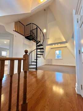 FANTASTIC, bright, quiet 2 bedroom unfurnished apartment + very large living room/dining area on 3rd floor with cathedral ceiling, loft space, hardwood floors & carpeting
