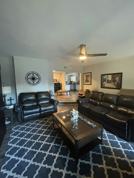 The kitchen is a chef's delight, equipped with modern appliances, ample cabinetry, and a convenient layout that makes meal preparation a breeze. Large windows throughout the home allow for an abundance of natural light, creating a warm and welcoming atmosphere.