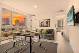 Step into a stylish and smartly designed space, created for ultimate comfort and convenience during your Miami stay. Relax in a modern living space featuring a comfortable sofa bed and a TV for entertainment. Unwind on a plush full-size bed, ensuring a great night's sleep after a day of exploring. A sleek, fully equipped kitchen has everything you need to prepare meals and snacks with ease. Refresh in a pristine, modern bathroom with premium fixtures and essential amenities provided. A washer and dryer are located inside the unit for your ultimate convenience.