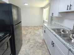 The kitchen is equipped with modern appliances and ample cabinetry, making meal preparation a breeze. Large windows throughout the unit allow natural light to flood in, enhancing the bright and airy atmosphere.