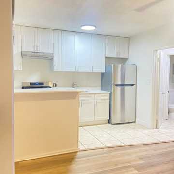 Beautifully remodeled one bedroom one bath apartment with new laminate wood floors throughout and stainless steel oven and fridge