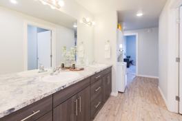 This shared room comes furnished with 2 twin beds. This apartment in Rexburg offers modern comfort and convenience, perfect for families, students, or professionals seeking short- or mid-term housing. The bright living space features large windows, a comfortable layout, and a wall-mounted Smart TV, creating a welcoming spot to relax or gather. The fully equipped kitchen comes with a stove, oven, refrigerator, dishwasher, microwave, cookware, and plenty of storage, while the built-in breakfast bar seats six and works equally well for meals, study sessions, or as a convenient workspace.