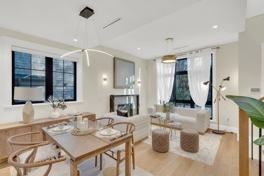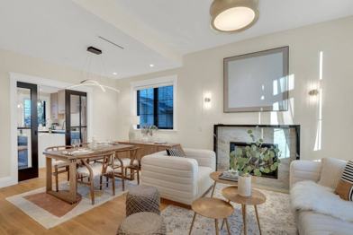 This thoughtfully designed suite features warm modern finishes and a smart layout that create a spacious feel. It includes a king-size bed with quality linens and ample closet storage, a bright open-concept living area with a comfortable sofa, and a 50” Smart TV for streaming and entertainment. The fully equipped kitchen features quartz countertops, stainless steel appliances with cooking essentials, and a kitchen island with seating for casual dining. There is also a modern bathroom with a glass walk-in shower and an in-suite washer and dryer for added convenience.