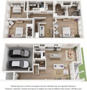 All townhomes include a 2 car garage. Additional street parking is available in designated areas of community. The Bennet and The Dashwood townhomes include an additional 20 ft driveway that will fit 2 additional cars.