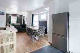 This modern, symmetrical duplex is designed for families, friends, and large groups. It features chic interiors with vibrant colors and is stylishly furnished for a welcoming and sophisticated stay. Each side has a fully equipped kitchen for cooking and entertaining, and a comfortable living room for relaxing after a day of exploring. Enjoy the convenience of 2.5 bathrooms on each side.