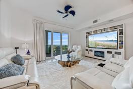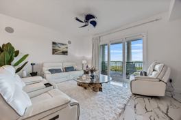 This condo features stunning views of the Banana River and airport from a private balcony, surrounded by a nature preserve. The king-size master suite includes a walk-in closet, desk space, and spa-like ensuite, while the second bedroom offers a queen bed and adjacent bath. The high-end kitchen boasts granite countertops, state-of-the-art appliances, and sleek cabinetry. Enjoy the luxurious living space with tile flooring, a 65-inch TV, and a modern, open design throughout. Resort amenities include nature trails, a pool with speakers, jacuzzi, fire pit, a waterfall, a clubhouse theater, an indoor gym with nature views, and spa services.