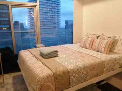 The apartment is steps from the Air Canada Centre and Union Station, and within walking distance of the Skydome, CN Tower, Aquarium, Financial District, and hundreds of restaurants. It's also close to the Eaton Center and Queen Street fashion district, with easy access to the Subway and GO station. A grocery store, LCBO, and TD bank are nearby. The lively Entertainment District lives up to its name with buzzy clubs, sports venues, and family attractions like Ripley's Aquarium of Canada and the CN Tower. The area also hosts musicals at the Princess of Wales Theatre, concerts at Roy Thomson Hall, and the Toronto International Film Festival at TIFF Bell Lightbox.