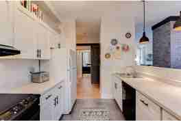 The unit has high ceilings, sunny southern exposure, and beautiful hardwood floors. The open-concept layout creates a bright. The well-appointed kitchen features ample cabinetry and counter space, making it a joy to cook and gather in.