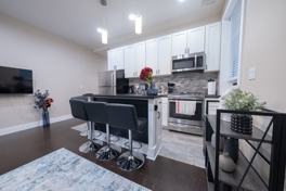 This apartment features an open kitchen with stainless steel appliances and a dishwasher, a huge living room, equal-size bedrooms, 2 full-size bathrooms, lots of light, extra-spacious closets, modern light fixtures, and a stylish tiled bathroom with a tub. The building features laundry and Amazon Lockers in the lobby, as well as security cameras.