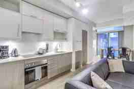 Perfectly located on Richmond St W, this clean and modern 1-bedroom apartment offers a balcony for your enjoyment. Feel at home with a fully equipped kitchen and in-unit laundry. Relax in the living area with a 50" Smart TV with HD cable and high-speed 500 Mbps internet.