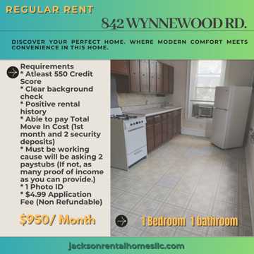 Welcome to 842 Wynnewood Rd., a charming and affordable 1-bedroom, 1-bathroom apartment available for just $950/month. This cozy yet spacious home offers the perfect balance of comfort, convenience, and style—ideal for individuals or couples looking for a peaceful place to call their own. Step inside and be greeted by beautiful hardwood floors that flow throughout the apartment, giving it a warm and inviting atmosphere. The living area is open and filled with natural light, creating a bright and airy space perfect for relaxing or entertaining. The kitchen comes equipped with clean white appliances, offering both functionality and simplicity for your daily cooking needs. The bedroom is nicely sized, providing ample room for comfort and storage, while the tiled bathroom features a full tub, perfect for unwinding at the end of the day. With its thoughtful layout and well-maintained finishes, this apartment makes everyday living easy and enjoyable. Located just a few blocks from Lewis C. Cassidy School, you'll enjoy the convenience of nearby schools, shops, and public transportation. 842 Wynnewood Rd. offers a great opportunity to experience quality living at an affordable price in a friendly and accessible neighborhood. Don't miss out on this inviting home! $950/ Month Requirements * Atleast 550 Credit Score * Clear background check * Positive rental history * Able to pay Total Move In Cost (1st month and 2 security deposits) * Must be working cause will be asking 2 paystubs (If not, as many proof of income as you can provide.) * 1 Photo ID * $4.99 Application Fee (Non Refundable)