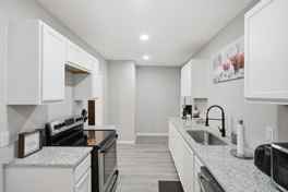 This space offers comfort and convenience with a modern kitchen, open-concept living area, and in-unit laundry. The fully equipped kitchen features stainless appliances and all cooking essentials. The bright, open-concept living area includes a Smart TV and comfortable seating. Central heating and cooling will keep you comfortable year-round.