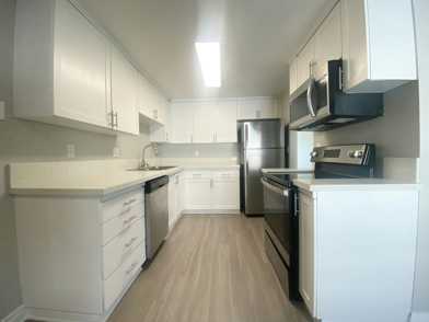 The open-concept living and dining area provides a versatile space for relaxation and entertainment, with large windows that flood the room with sunlight. The kitchen is equipped with essential appliances and plenty of cabinet space, making meal preparation a breeze.