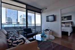 Quixotic is a 650-square-foot condominium located on Yorkville Avenue. This unique apartment features granite countertops, stainless steel appliances, a gas stove, marble bathroom floors, in-suite laundry, hardwood flooring throughout, and 9-foot ceilings. The gorgeous balcony has a patio set for outdoor dining and a west-facing view that looks over the city.