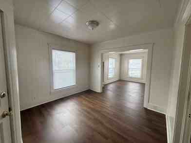 One-bedroom upper apartment in a well-maintained building above commercial space, accessed by an enclosed staircase. The unit features an open living and dining area, kitchen, bathroom, and bedroom. Unit is ready for move-in, it is conveniently located close to downtown and within walking distance of the hospital, with easy access to public transportation, local stores, and businesses.