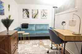 Charming and stylish, this fully furnished studio apartment offers all the necessary amenities for a comfortable stay. Located in a walk-up building on the 1st floor, one flight up, it provides a cozy retreat with a queen-size bed and a sleeper sofa with a topper. The apartment includes a desk, mirror, and AC, ensuring a pleasant living environment.