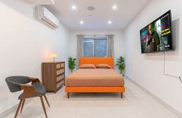 Experience contemporary Brooklyn living with an open layout featuring a private balcony, modern kitchen with full amenities, and in-unit washer. The bedroom includes soft linens and generous closet space. With high-speed Wi-Fi, a smart TV, split AC, and refined finishes throughout, this apartment perfectly combines comfort, style, and convenience.