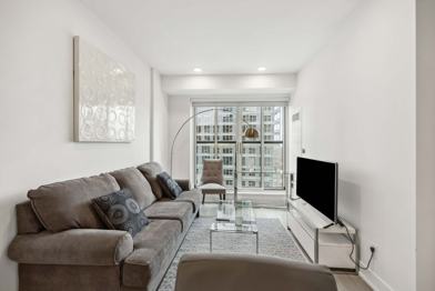 This suite is thoughtfully designed with modern finishes, clean lines, and a bright, open layout. Large windows fill the space with natural light, while carefully chosen fixtures and materials create a contemporary, comfortable atmosphere. The suite features a fully equipped kitchen and a cozy living area.