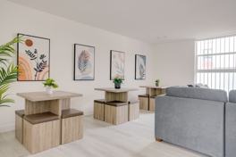 This brand-new co-living community includes two apartments with 14-18 private suites across three stories, just a 10-minute walk to the USC campus. Your room is a fully furnished single private suite with a bedroom and an en-suite bathroom. There’s a spacious kitchen and living room where you can also hang out with your housemates.