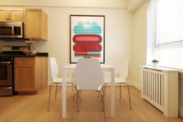 This apartment was recently renovated to include laundry in unit, custom closet organizers, and an updated kitchen with custom cabinetry, granite counter tops, and stainless steel appliances (30" gas range, built-in microwave, dishwasher, and refrigerator with ice maker). Immediately off of the kitchen is a perfect dining space separated from the living room.