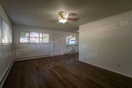 Great 2 bedroom, 1 bathroom, garden level unit in Loveland, Colorado near shopping, dining, Jayhawker Ponds, and River's Edge Natural Area. Features include new LVP flooring throughout, freshly painted walls, a coin-operated laundry facility, a porch, and a garage.