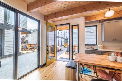 The Village is an innovative, urban coliving community offering single occupancy rooms with carefully designed, shared living spaces! The buildings are comprised of a nicely restored vintage home converted into 5 individual, single-occupancy rooms, and 3 architecturally modern towers, each with 7 single-occupancy rooms. A few of the most affordable vintage rooms share a bathroom with one other tenant, and all of our modern tower rooms have private bathrooms. Six of our select tower rooms have additional loft space. The Village also features fully furnished common areas that everyone shares, including 4 well supplied kitchens, a dining room, living room, and multiple outdoor patios and community gardening areas! The dining and living spaces are furnished with coliving in mind, offering ample room & the cookware, cutlery, dishes and appliances to host a large dinner. Many rooms at The Village offer spectacular natural light through floor to ceiling windows. There are several outdoor patios and seating nooks allowing residents to get some fresh air. Residents can unwind at the end of the day surrounded by community minded housemates, or pop around the corner to eat, shop, and drink on Mississippi Avenue.