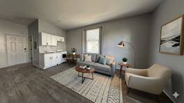 This apartment in Philadelphia offers a harmonious blend of classic architecture and modern comfort. The space is characterized by its expansive primary bedroom which could potentially serve as a combined living and sleeping area. Rich hardwood floors run throughout, adding warmth and character to the entire unit.
