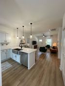 The fully-equipped kitchen boasts sleek, modern appliances and all the essentials for preparing delicious meals. Whether you’re brewing your morning coffee or whipping up a gourmet meal, you’ll find everything you need at your fingertips.