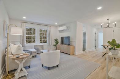 Living Area: "The spacious living room features a comfortable sofa, a stylish coffee table, and a flat-screen TV, perfect for relaxing."