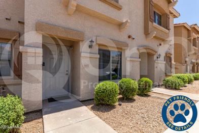 1,315 SQ FT! 2 bedroom, 2.5 bath condo unit in Scottsdale Casitas! Stunning interior with modern features throughout. Thoughtful two-story floor plan! Trendy eat-in kitchen with included appliances, & expansive breakfast bar. Kitchen opens to spacious living/dining area, great for entertaining! Neutral interior with wood-like flooring in all the right places. Flexible den makes great home office/bonus room! Desirable dual primary suite floor plan, each with ample closet space & ensuite bath. Blinds + ceiling fans! Convenient upstairs laundry with included washer/dryer. Enjoy a private patio + assigned parking! **Water/Sewer/Trash Services Included!** Scottsdale Casitas is a desirable community offering gated entry, community pool + spa, gated parking, & nearby transportation services. Great Scottsdale location with easy Loop-202 + AZ-101 access!