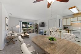Thoughtfully designed, open and flowing floor plans feature wood burning fireplaces, vaulted ceilings (per plan), private patios or decks (per floor) with storage, full-sized washer/dryer, spacious master bedrooms with walk-in closet, and elegant baths with vanity, chrome fixtures and easy-care one-piece tub/shower surrounds.