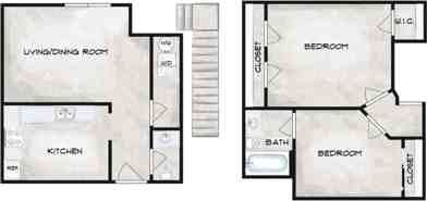 Our community features spacious two-bedroom, 1.5-bathroom townhomes designed with your lifestyle in mind. Each residence comes equipped with full-size washer and dryer connections, giving you the convenience of in-home laundry.