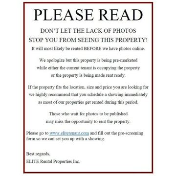 TO SCHEDULE A SHOWING GO TO: ELITETENANT.com
