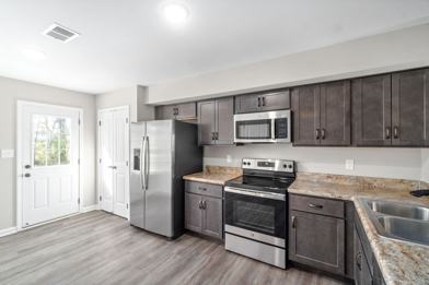 **1ST TWO WEEKS FREE RENT!** These townhomes features beautiful brick & vinyl construction in the front and back of each unit. Inside the open front room LVT flooring, fresh greige tone paint with white trim accents. There's an eat-in kitchen with a large pantry & laundry room with connections. Guest bath is located between the living room & kitchen area. Upstairs features new plush carpet bedrooms each with their own private full bath. Up to 2 pet are welcome, 40 Lbs. combined weight or less, pet fees and restrictions apply. *$50 Monthly Water Fee **All pictures of Apartments, Townhomes, and Condos are for advertisement purposes only. View unit before securing.