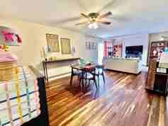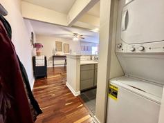 Inside, you'll find a spacious ground-level 1-bedroom apartment. This home features sleek tile flooring throughout, an open layout with plenty of room to relax, and a cozy dining nook right off the kitchen—perfect for meals or a small workspace. Enjoy the added ease of in-unit laundry, plus off-street parking for stress-free coming and going. A great blend of practicality and charm, ready for you to call home!