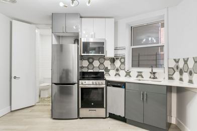 This true 3 bedroom 1 bath has been fully gut renovated and boasts queen sized bedrooms, large living room area, beautiful modern finishes including brand new hardwood floors, recessed lighting, sleek kitchen design with granite countertops and LG and GE stainless steel appliances, brand new modernized bathroom with rain shower and more. The units come fully furnished with queen sized beds, couches, tables, free smart TV, and all utilities.