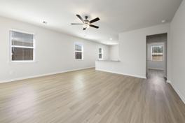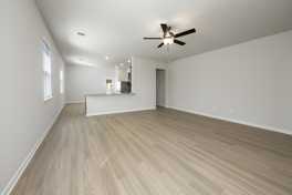 Front yard landscape services of mow, edge, and seasonal bed maintenance included in rent. All appliances included. Style meets functionality in the 3-bedroom, 2-bath Clover plan from LGI Living. From the moment you step through the front door, the open and spacious layout of this single-story home unfolds and welcomes you to relax and unwind. The private dining room sets the stage for engaging conversation over meals, while the open kitchen and family room are perfect for hosting larger groups. The oversized covered back patio extends the entertaining space outdoors, giving you the perfect space for soaking in summer nights. The Clover is outfitted with an array of designer upgrades, including a full suite of energy-efficient, stainless steel kitchen appliances, granite countertops, breakfast bar, stunning wood cabinetry with crown molding and recessed LED lighting. The large master bedroom in the Clover provides a restful retreat with a large soaker tub, walk-in shower, and expansive walk-in closet.