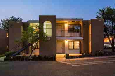 Modern and updated upstairs 2 bedroom apartment with lots of custom touches. Great layout with two bedrooms and a large living space, a full bath, and smartly designed kitchen with granite counter tops and large walk-in pantry. Vinyl Plank and tile in wet areas make for easy, low-maintenance living. Great corner kitchen sink, dishwasher, disposal and a hooded stove, along with a full-size refrigerator. Exceptional South UNM area close to UNM / CNM / Kirtland Air Force Base, the airport, and I-25. Covered porch / balcony entry with great views of golf course across the street. Free laundry in shared and secure communal laundry room for 4-plex.