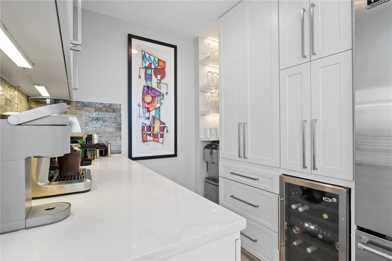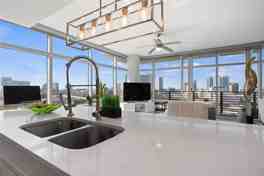 This corner-unit showpiece delivers unobstructed 270-degree views spanning from the Port of Tampa, across the sparkling downtown skyline, and out to Hillsborough Bay. From sunrise to the city?s glowing evening lights, enjoy breathtaking Florida sunsets from your private wraparound balcony ? a rare and coveted feature that elevates urban living to new heights. Step inside to an expansive, open-concept living space where floor-to-ceiling windows flood the home with natural light, showcasing the stunning views from every angle. The chef-inspired kitchen is a true centerpiece, boasting modern soft-close cabinetry, sleek white quartz countertops, a custom backsplash, and a built-in bar with wine fridge?ideal for entertaining. A gas stove and range hood, rarely found in condo living, make this a dream kitchen for culinary enthusiasts.