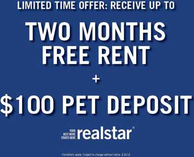 Rent Special available! $500 SECURITY DEPOSIT* + $100 PET DEPOSIT*