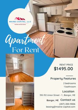 2-Bedroom Unit for Rent in Bangor—Available Now! Features: - 2 Bedrooms, 1 Bath - All utilities included (except electricity) - Off-street parking - Coin laundry on-site Apply today so we can schedule your showing!