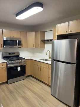 Newly renovated large 2 Bedroom 1 Bath located in downtown Bound Brook. The apartment features an updated large kitchen with stainless steel appliances, espresso shaker cabinets, quartz countertops. Luxury vinyl flooring throughout, LED lighting, large closets, and black modern fixtures. Renovated bathroom with updated flooring, tiled shower.